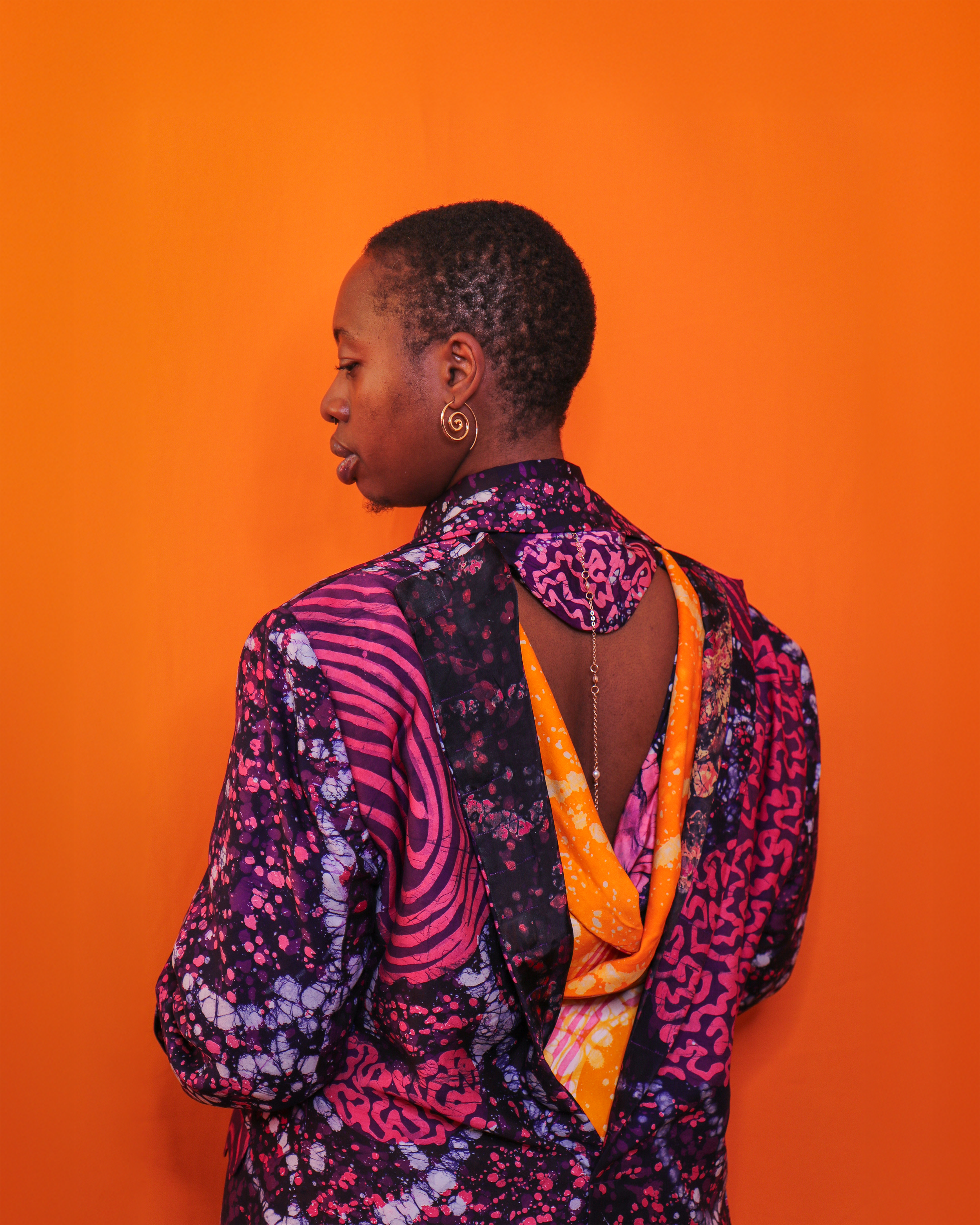 A silk blazer that blends classic tailoring with playful twists: oversized proportions, elongated sleeves with cheeky thumb-holes, custom lining for the perfect fold-up sleeve moment, and a transformational open-back feature. Formal to spicy - all in one piece.